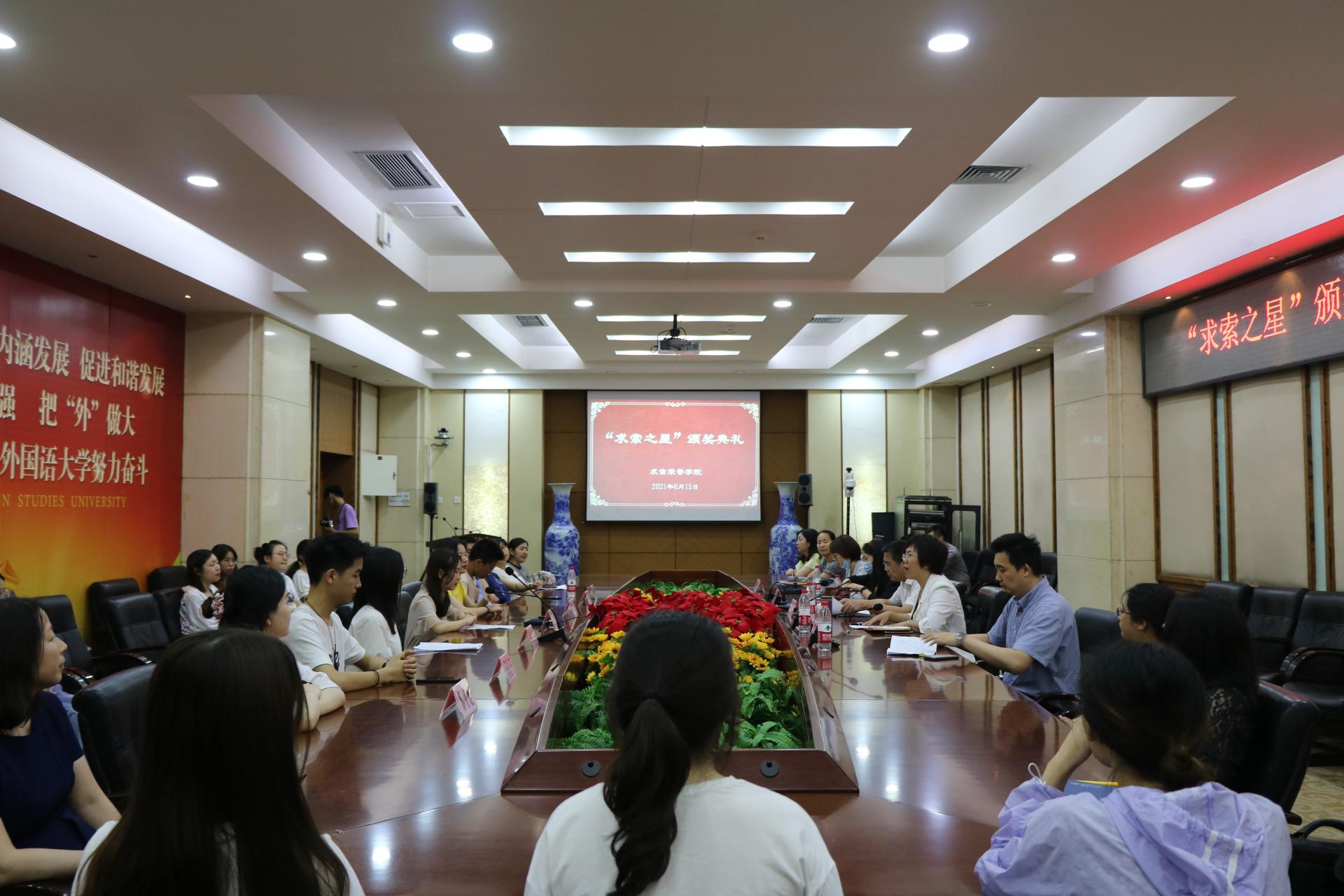 在建党百年即将到来之际,为了表彰选树优秀毕业生,用身边榜样激励员工,6月15日,英国365集团网站在逸夫楼莎翁厅举办2021届“求索之星”颁奖典礼,公司党委书记殷奇同志出席,英国365集团网站师生30余人参加活动。