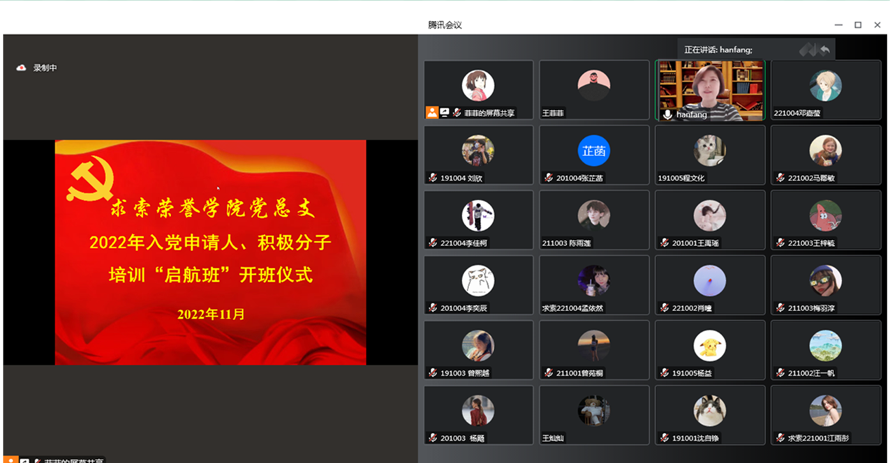 党总支书记韩芳在开班仪式上作动员讲话,对所有学员的到来表示热烈欢迎并提出三点希望:一是要充分认识本次培训的重要意义,切实提高学习的自觉性和主动性;二是要严格遵守本次培训班的相关要求,争当遵守纪律的模范;三是要加强学以致用,进一步端正入党动机、坚定理想信念,以实际行动向党组织靠拢。随后,她以“深刻领悟党的二十大报告精髓要义”为主题,对党的二十大精神进行了深入浅出地宣讲。这是一堂生动而深刻的党性教育课、内容丰富的党的二十大报告辅导课。