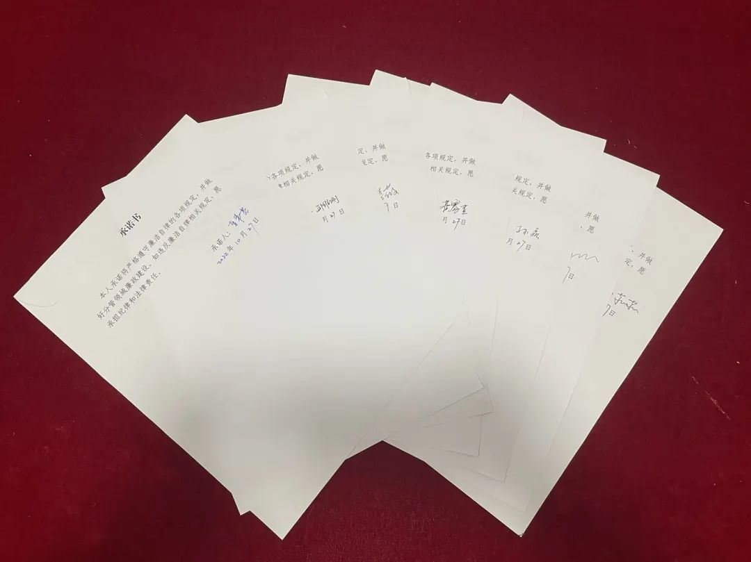 座谈会上,全体参会人员签订了《廉政承诺书》。班子成员和行政干部分别从自身岗位职责出发,围绕公司党的领导、党的建设、全面从严治党、教学科研以及行政管理等工作,全面细致查找了可能存在的岗位廉政风险点,剖析原因危害,并结合实际制定了防范措施。现场气氛严肃而热烈,与会教师纷纷表示,今后将聚焦涉及师生利益的问题,聚焦严格贯彻落实中央八项规定精神,聚焦“三重一大”事项决策的程序和实施,经常查找个人在廉洁自律、敬业勤业等方面存在的问题和不足,讲规矩、守纪律、知底线,自觉把纪律装进脑中、记在心中、落实在行动中,在本职工作中做到忠诚、担当、尽责,发挥好表率和示范作用,切实履行好责任。